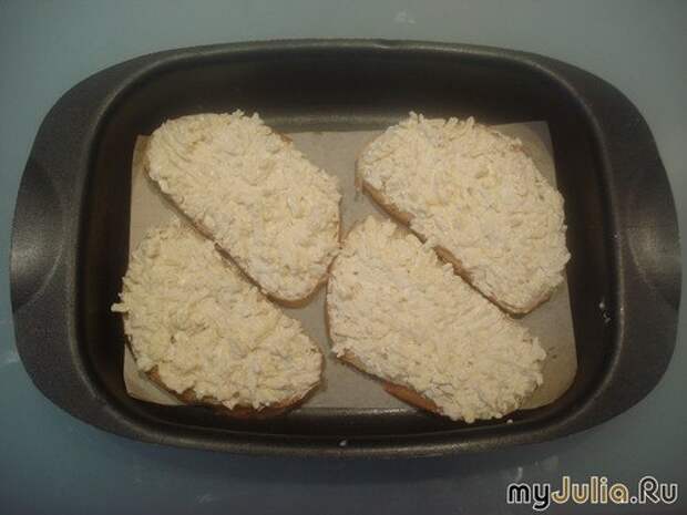 Уложите будущие тартинки на противень и запекайте до золотистой корочке на 200 гр.С. Не пересушите, т.к. запекается очень быстро и в первую очередь - нижняя сторона батона. Как только появится ароматный запах, я уже выключаю духовку и довожу до готовности при её остывании.