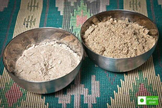 Затем делаем вот что, о прекраснейшие и великодушнейшие, смешиваем семечки и муку вместе, и произносим заклинание, с помощью которого эта смесь измельчится в миллионы частичек. «Трах-тибидох-тибидох!» Если заклинание не сработало, то используем кофемолку.